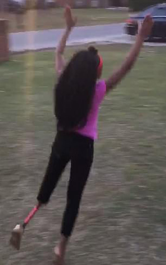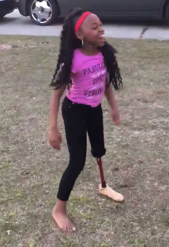 استطاعت طفلة 10 سنوات التغلب علي إعاقتها بعد أن بترت إحدي قدميها بسبب مرض نادر، وارتدائها ساقا صناعية، ونشرت فيديو مصور لها وهي تقوم بعمل حركات بهلوانية وشقلبات مثل راقصات البالية، الفيديو الذي نشر علي وسائل التواصل الاجتماعي لاقا رواجا كبيرا من رواد السوشيال ميديا.