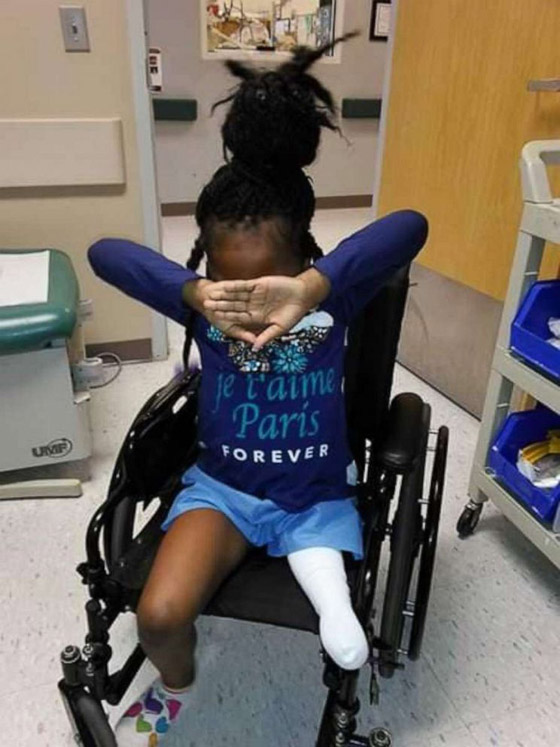 قالت الأم التى تبلغ من العمر 30 عاما، عن أبنتها، أنها تذهلها كل يوم، فهي مستقلة وقوية، وكان بتر القدم قرارا صعبا بالنسبة لى، حيث اعتادت المشى على ساقها القصيرة، على أطراف أصابعها، ولكن اخبرنى الأطباء ضرورة اتخاذ ذلك القرار الفظيع، وأضافت:"عندما خرجت من الجراحة لأول مرة قالت لى أمى لا استطيع الشعور بأصابع أقدامى، هرعت إلى الحمام وبدأت أبكى مثل طفل كبير".
