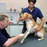 ويوضح ذلك مارتن غروس قائد فريق البحث وعالم الأحياء في الجامعة بقوله إن "حركة الكلاب الطبيعية على الأرض صممت لتقوم بها أربعة قوائم متساوية، وبعد فقدان أحدها بسبب الإصابة على سبيل المثال، يتعين اللجوء إلى عملية إعادة تشكيل للنظام الحركي". واكتشف غروس وزملاؤه أن الكلاب تعاني من صعوبات أكثر في حال فقدان طرف أمامي مقارنة بفقدان طرف خلفي .