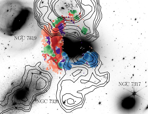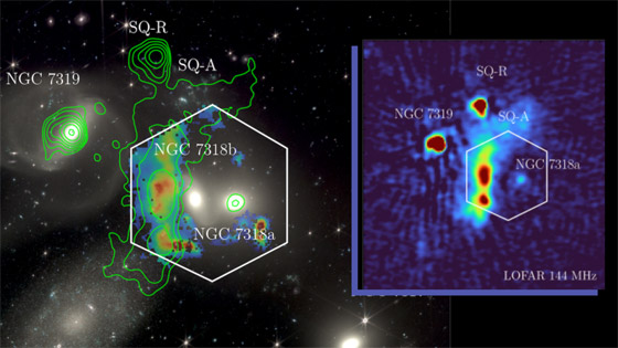 وتم رصد التصادم الهائل في "خماسية ستيفان" (Stephan's Quintet)، وهي مجموعة من 5 مجرات تقع في كوكبة الحمل (Pegasus)، شوهدت لأول مرة منذ ما يقرب من 150 عاما. وتمكن فريق من العلماء بقيادة جامعة هيرتفوردشاير من التقاط الحدث باستخدام مطياف المجال الواسع الجديد الذي تبلغ تكلفته 20 مليون يورو لمرصد ويليام هيرشل المعزز لسرعة المنطقة (WEAVE) في لا بالما بإسبانيا.