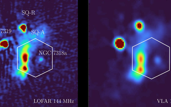 رصد العلماء تصادما هائلا بين مجرتين بسبب مجرة واحدة تتحرك بسرعة مليوني ميل في الساعة، بتفاصيل غير مسبوقة بواسطة أحد أقوى التلسكوبات على الأرض. وأثار الاصطدام صدمة قوية للغاية تشبه تماما الصوت الناتج عن الطائرة النفاثة، والتي اعتبرت من بين أكثر الظواهر المذهلة في الكون، وفقا للعلماء.
