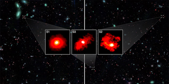 اكتشف علماء فلك ما أطلقوا عليه اسم "الوحوش الحمراء"، وهم عبارة عن 3 مجرات كبيرة، تكاد تكون بحجم مجرة درب التبانة. يقول الفلكي إيفو لابي من جامعة سوينبرن للتكنولوجيا في أستراليا: "استنادًا إلى الملاحظات الدقيقة والتحليل، أصبح لدينا فكرة جيدة عن كيفية حدوث العديد من العمليات الكونية. ولكن هناك فترة زمنية حاسمة ما زلنا نجهل تفاصيلها: الكون المبكر، المعروف باسم (فجر الكون)، وهو أول مليار سنة بعد الانفجار العظيم".