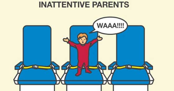 التقصير في أداء الواجب تجاه الأطفال: ويعتبر تجاهل الأهل لإطعام أطفالهم وجبات طعام خفيفة على متن الطائرة، أو توفير وسائل الترفيه لهم، مصدر إزعاج لـ64 في المائة من الأشخاص الذين شملهم الإستطلاع.