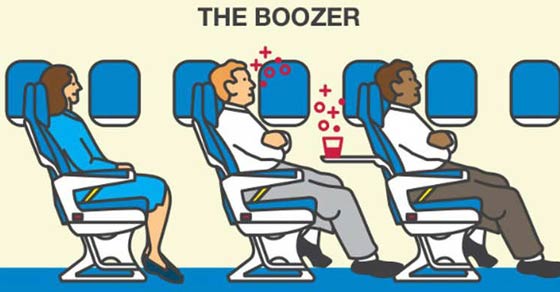 الأشخاص الذين يصابون بحالة من السكر نتيجة تناول الكحول على متن الطائرة: ويتسبب هؤلاء بإزعاج نصف الأشخاص الذين شملهم الاستطلاع