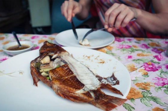 - من الضروري أن تؤكل الأسماك على أنواعها بالشوكة والسكين، فتبدأي بقطع الرأس والزيل أولاً، من ثم إزالة الحسك الموجود في الظهر، قبل فتح قلب السمكة لتبدو مفتوحة على الجهتين، علماً أن ثمار البحر يُمكن تناولها باليد.