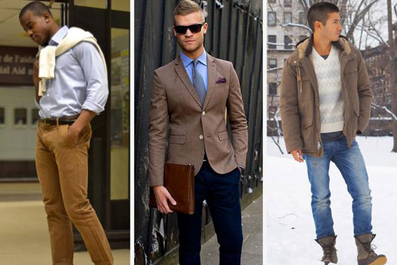 يشير اللون البني إلى الذكورة والالتزام والاستقرار ، ولكن لسوء الحظ ، يمكن أن يبرز أيضًا على أنك شخص  ممل، لذلك يحب عليك أن تضع في اعتبارك إضافة دفقة من الألوان لإضفاء الحيوية على إطلالتك.