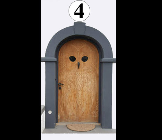 الباب هذا والذي هو على شكل بومة يجسد التفرد وحب المعرفة والحشرية. السعادة خلفه ترتبط بالشخصيات المستقلة والتي تملك الكثير من الطاقة والتي قلبها الكبير يتسع للجميع. هي للشخصيات التي تلعب دور البطل في حياتها اليومية وبالتالي ما تنفك تضحي وتنقذ وتساعد ما يعني انها منهكة نفسياً وبدنياً. الراحة والسعادة كلها خلف هذا الباب وهي ستمكن اصحاب هذه الشخصية من الاستمتاع بنتائج الاعمال الخيرة التي قام بتقديمها للآخرين. خلف هذا الباب هناك الثراء بالإضافة الى السعادة وراحة البال.