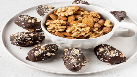 تمر محشو بالمكسرات ومغطى بالشوكولاتة الداكنة لضيافة عيد ..