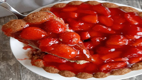 إليكم طريقة تحضير كيك الموز بصلصة الفريز.. حلوى صيامي ..