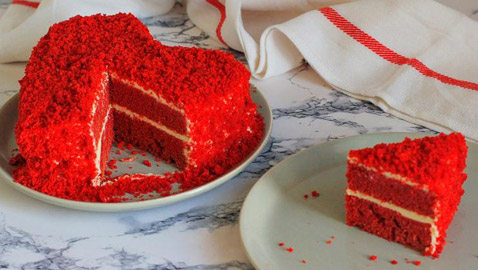 إليكم طريقة تحضير كعكة عيد الحب المخملية بالكريمة والحليب ..