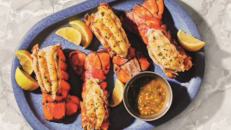 ذيل اللوبستر مع صلصة الليمون والثوم والفلفل الحلبي