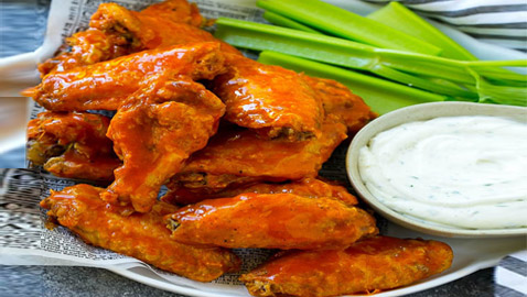 مقرمشة وحارة ومثالية للعزومات.. إليكم وصفة جوانح الدجاج بصلصة ..
