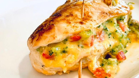 طريقة عمل صدور الدجاج المحشوة بالجبن والبروكولي