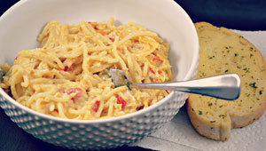 اليكم طريقة تحضير سباغيتي بالدجاج والجبنة الشهية