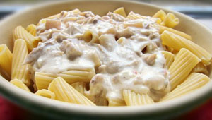 اليكم طريقة تحضير المكرونة بالصوص الأبيض وقطع الدجاج