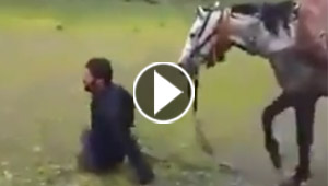 فيديو مثير.. بلا ساقين ويستعرض مهاراته في ركوب الخيل برا ..