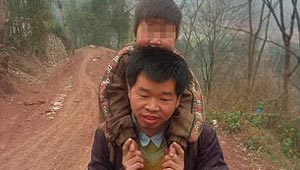 صيني يحمل ابنه المعاق الى المدرسة ويقطع مسافة 28 كم يوميا