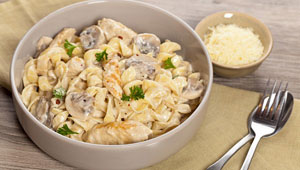 اليكم طريقة تحضير المعكرونة بالدجاج والصلصة البيضاء لايت ..
