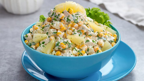 إليكم وصفة سلطة الأناناس بالدجاج والذرة.. مميزة ولذيذة