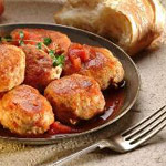 كرات لحم الدجاج بصلصة البندورة والرمان