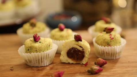 اليكم طريقة عمل غريبة بالتمر والفستق للعيد