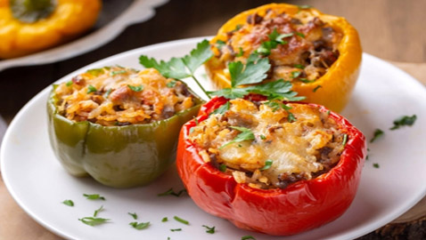 إليكم وصفة محشي الفلفل الرومي بالأرز واللحم المفروم اللذيذة ..