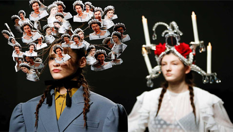صور: عرض أزياء لتصاميم تثبت على الرأس في أسبوع لندن للموضة