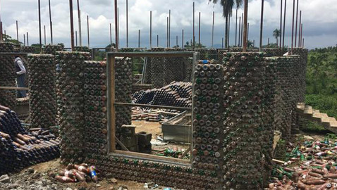 بالصور: بناء منزل من الرمل وقناني البلاستيك الفارغة في ..