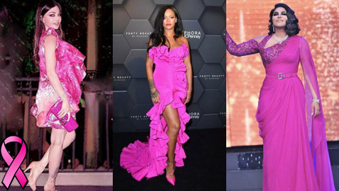 بالصور: اطلالات النجمات باللون الوردي تدعم مريضات سرطان ..