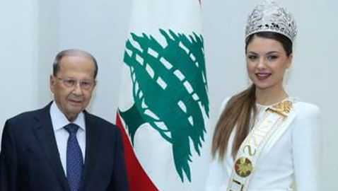 صور ملكة جمال لبنان مايا رعيدي تلتقي ميشال عون بقصر بعبدا