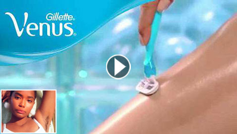 اعلان يُظهر نساء مشعرات يحلقن شعرهن أمام الشاشة مباشرة