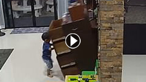 شاهدوا.. خزانة كبيرة تكاد أن تسحق طفلاً صغيراً تحتها