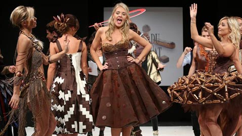 فساتين من شوكلاتة وحقائب من نفايات .. ازياء مصممة من مواد ..