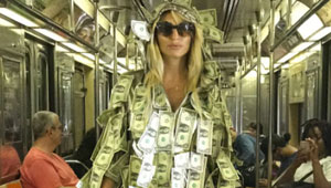 صور عارضة أزياء أرجنيتية ترتدي فستانا من الدولارات