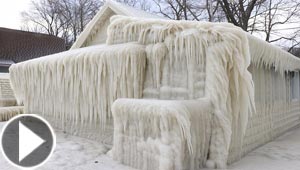فيديو وصور.. منزل متجمد بكامله بفعل عاصفة ثلجية ضربت ..