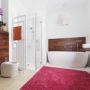 الحمامات الحديثة ترحب بحرارة باللون الوردي